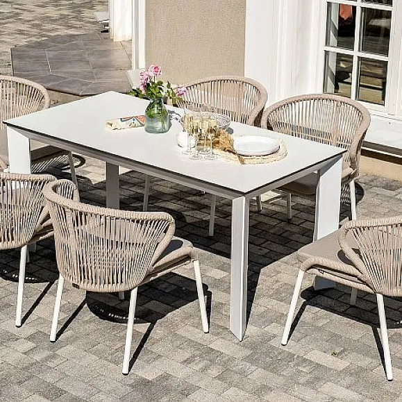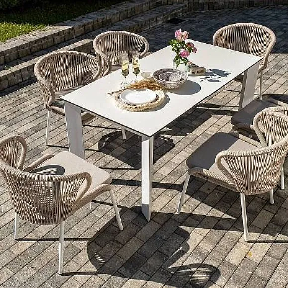 Обеденная Венето 4SIS группа на 6 персон со стульями Милан, каркас белый, роуп бежевый