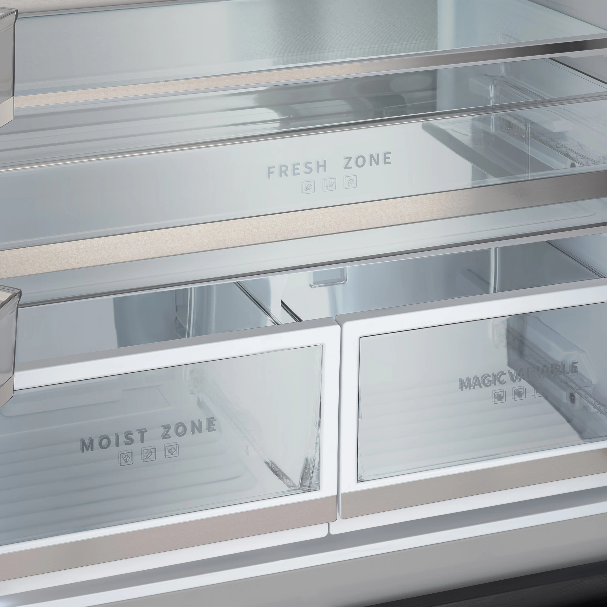 Особенности морозильной камерыМорозильное отделение делят на три части 3 выдвижных ящика, что помогает предотвратить потери холода при открывании. Если нужно заморозить большой объём продуктов — поможет функция «Быстрая заморозка», которая установит в морозильной камере температуру -28°С на 24 часа.