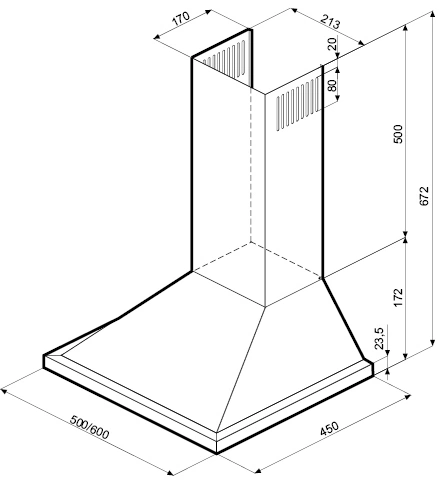Вытяжка каминная Krona Bella 500 inox PB нержавеющая сталь управление: кнопочное (1 мотор)