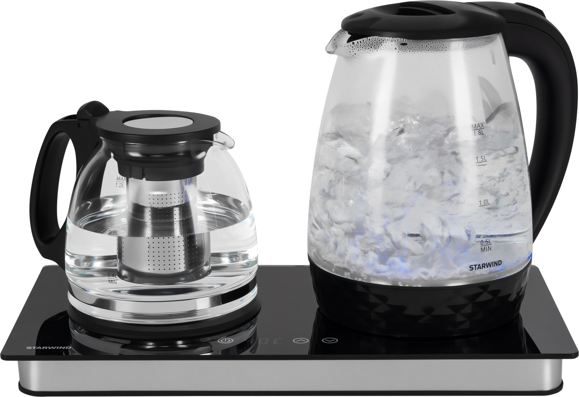 Чайник электрический Starwind SKG4044 1.8л. 1800Вт черный/серебристый корпус: стекло