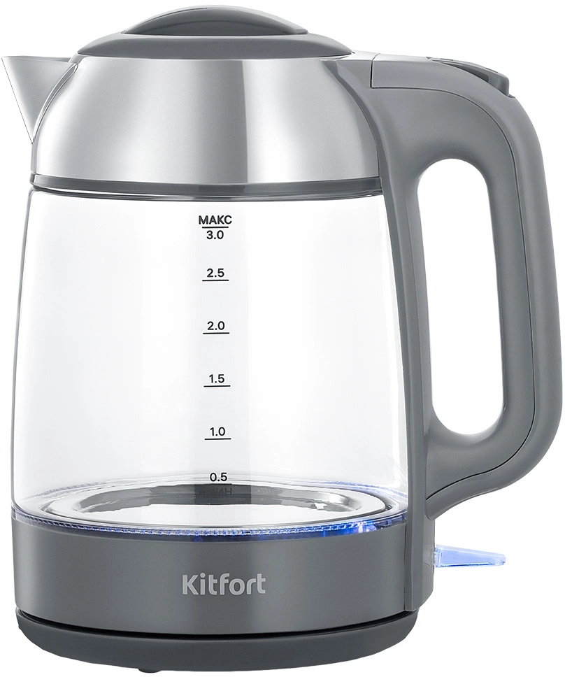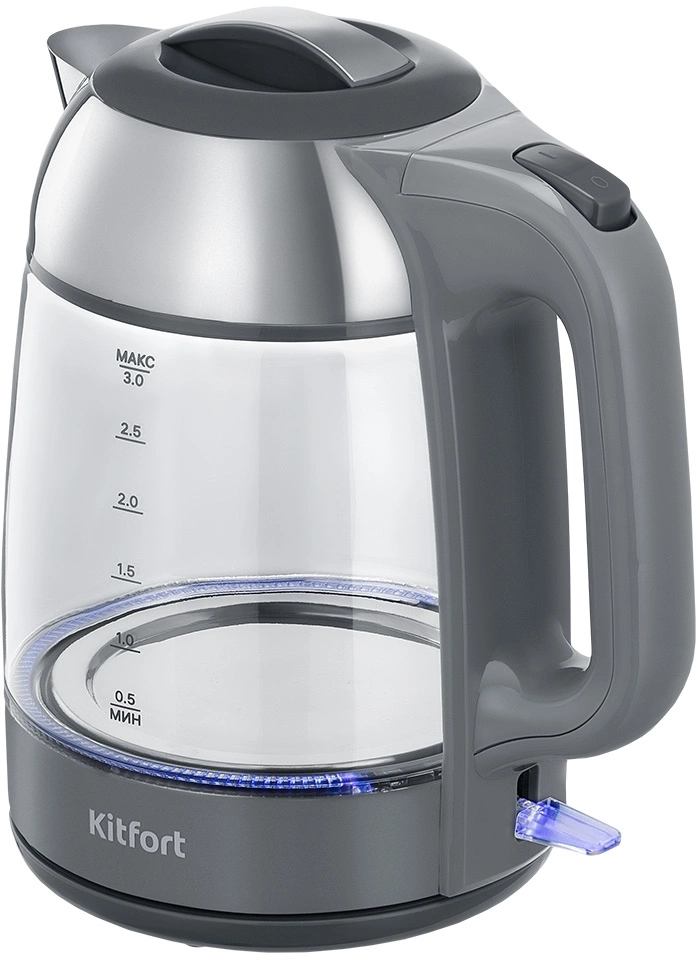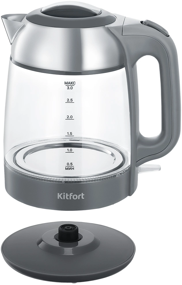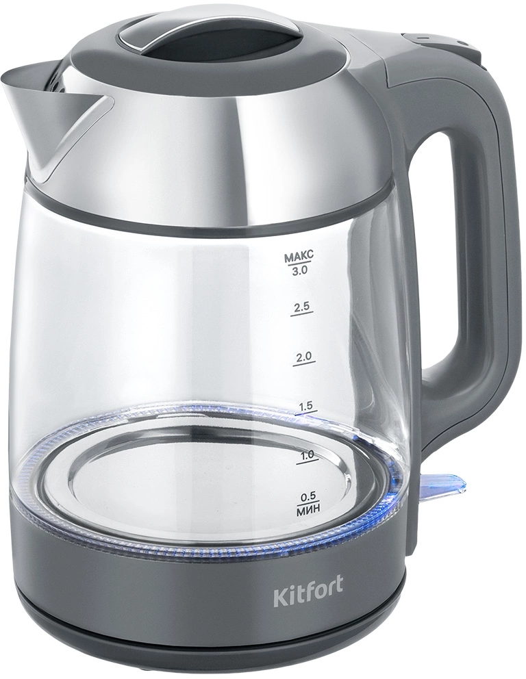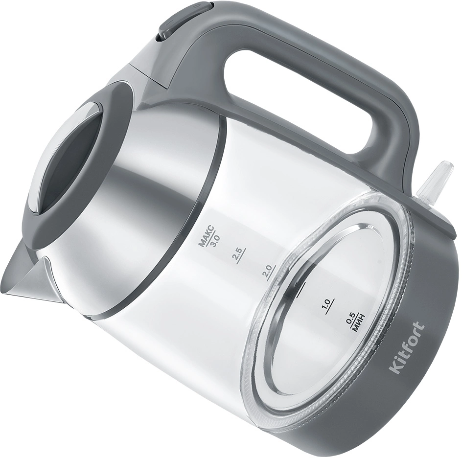 Чайник электрический Kitfort КТ-6762 3л. 2000Вт серый/серебристый корпус: стекло/металл/пластик