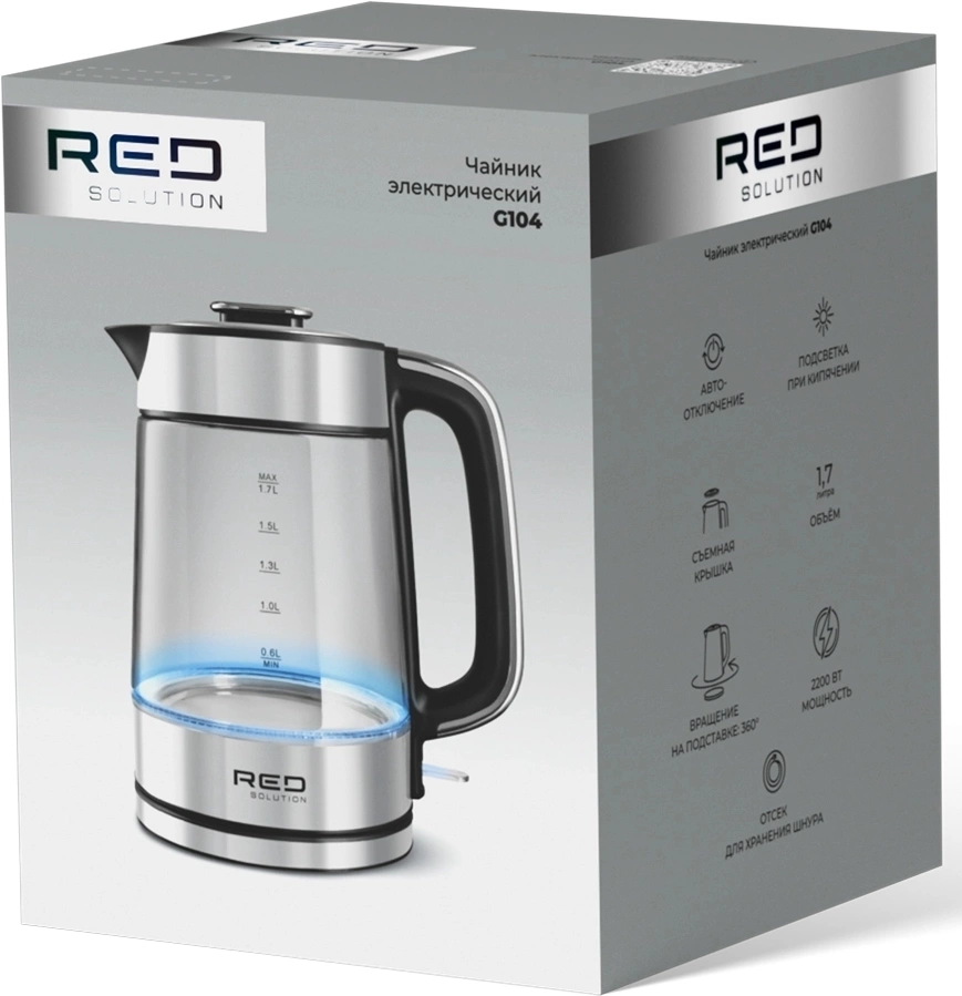 Чайник электрический Red Solution G104 1.7л. 2200Вт черный/серебристый корпус: нержавеющая сталь/стекло/пластик