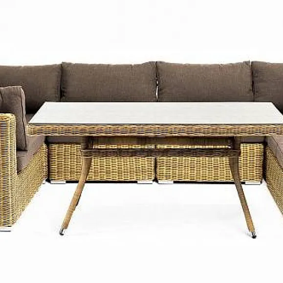 Обеденная Лунго 4SIS группа угловая из искусственного ротанга, цвет соломенный