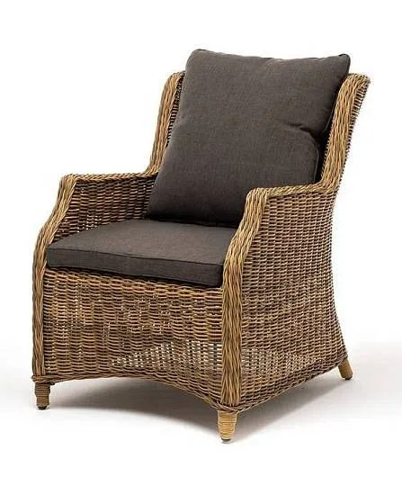 Каркас мебели сделан из алюминия. Присутствует ручное круглое плетение, при изготовлении которого используется искусственный ротанг.