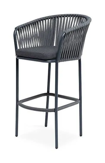 Стул Бордо 4SIS барный плетеный из роупа, каркас из стали темно-серый (RAL7024) муар, роуп серый 15мм, ткань темно-серая 27