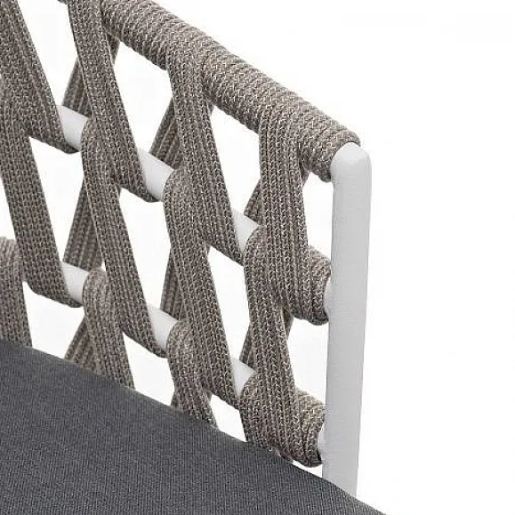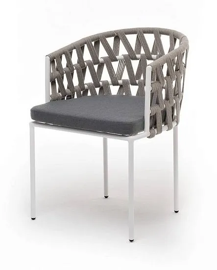 Стул Диего 4SIS плетеный из роупа, каркас из стали белый муар, роуп серый меланж круглый, ткань серая 17