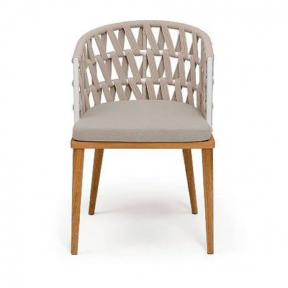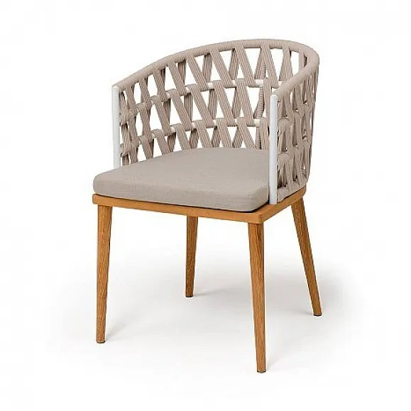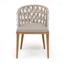 Стул Диего 4SIS плетеный из роупа, основание дуб каркас из стали белый муар, роуп бежевый круглый, ткань бежевая 52