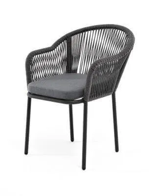 Стул Лион 4SIS плетеный из роупа, каркас алюминий темно-серый (RAL7024) муар, роуп темно-серый круглый, ткань темно-серая 27