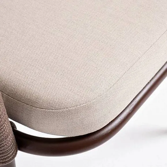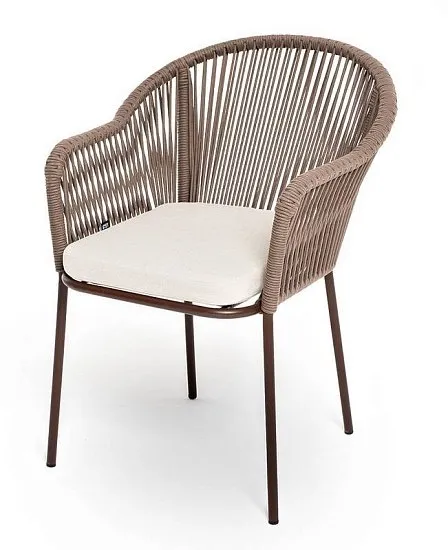 Стул Лион 4SIS плетеный из роупа, каркас из стали коричневый (RAL8016) муар, роуп коричневый круглый, ткань бежевая 52