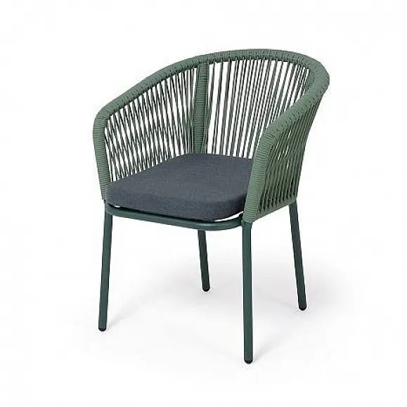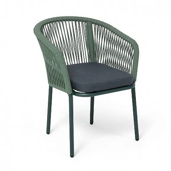 Стул Марсель 4SIS плетеный из роупа, каркас алюминий RAL6036 муар, роуп зеленый -4204 круглый tex, ткань темно-серая 27