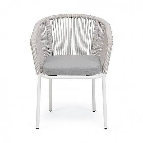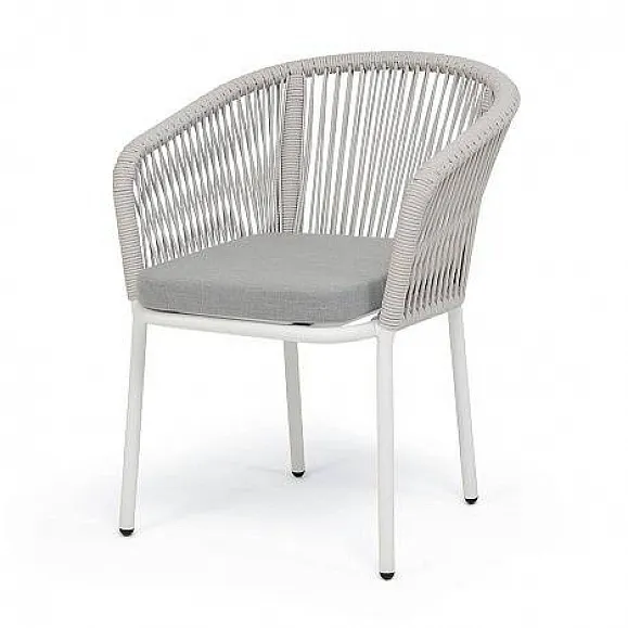 Стул Марсель 4SIS плетеный из роупа, каркас алюминий белый муар, роуп светло-серый меланж круглый tex, ткань светло-серая