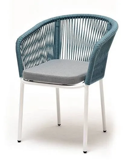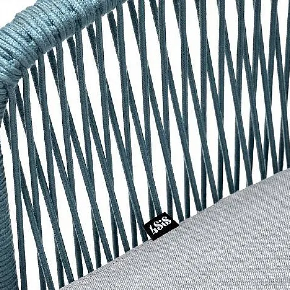 Стул Марсель 4SIS плетеный из роупа, каркас алюминий светло-серый (RAL7035) муар, роуп бирюзовый круглый, ткань светло-серая