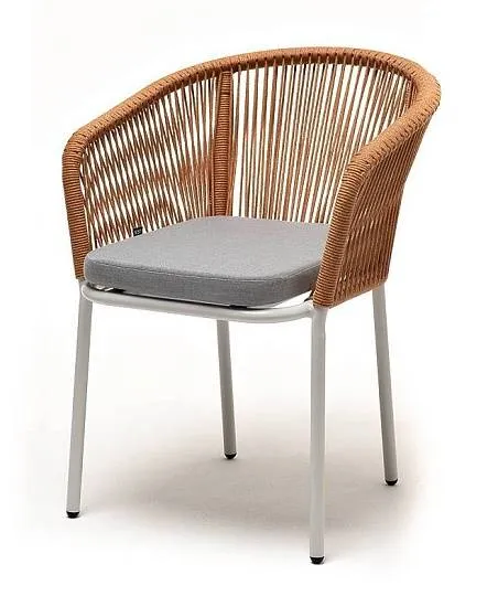 Стул Марсель 4SIS плетеный из роупа, каркас алюминий светло-серый (RAL7035) муар, роуп оранжевый меланж круглый, ткань светло-серая