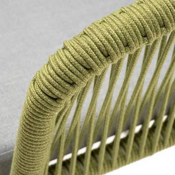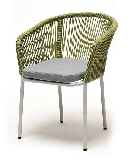 Стул Марсель 4SIS плетеный из роупа, каркас алюминий светло-серый (RAL7035) муар, роуп салатовый меланж круглый, ткань светло-серая