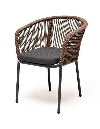 Стул Марсель 4SIS плетеный из роупа, каркас алюминий серый (RAL7022) муар, роуп коричневый круглый, ткань темно-серая 27