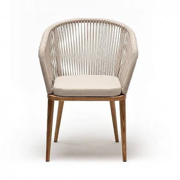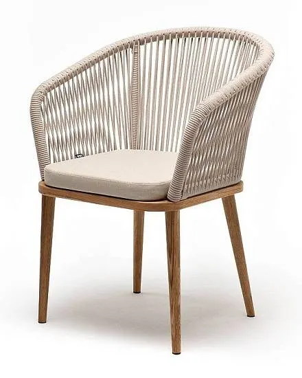 Стул Марсель 4SIS плетеный из роупа, основание дуб, роуп бежевый круглый, ткань бежевая 52