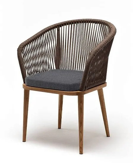Стул Марсель 4SIS плетеный из роупа, основание дуб, роуп коричневый круглый, ткань темно-серая 27