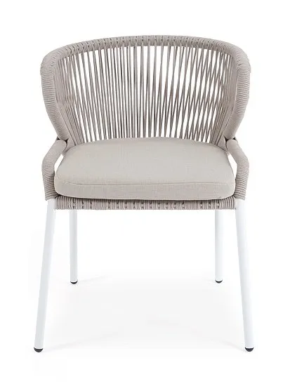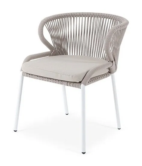 Стул Милан 4SIS плетеный из роупа, каркас алюминий белый муар, роуп бежевый круглый, ткань бежевая 15052