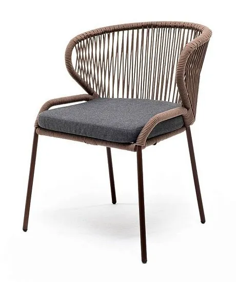 Стул Милан 4SIS плетеный из роупа, каркас алюминий коричневый (RAL8016) муар, роуп коричневый круглый, ткань темно-серая 27