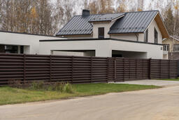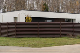 Ограждение такого типа визуально обладает легкостью, оно продуваемо, не обладает парусностью, оставляет участок частично открытым, но при этом максимально защищенным.
