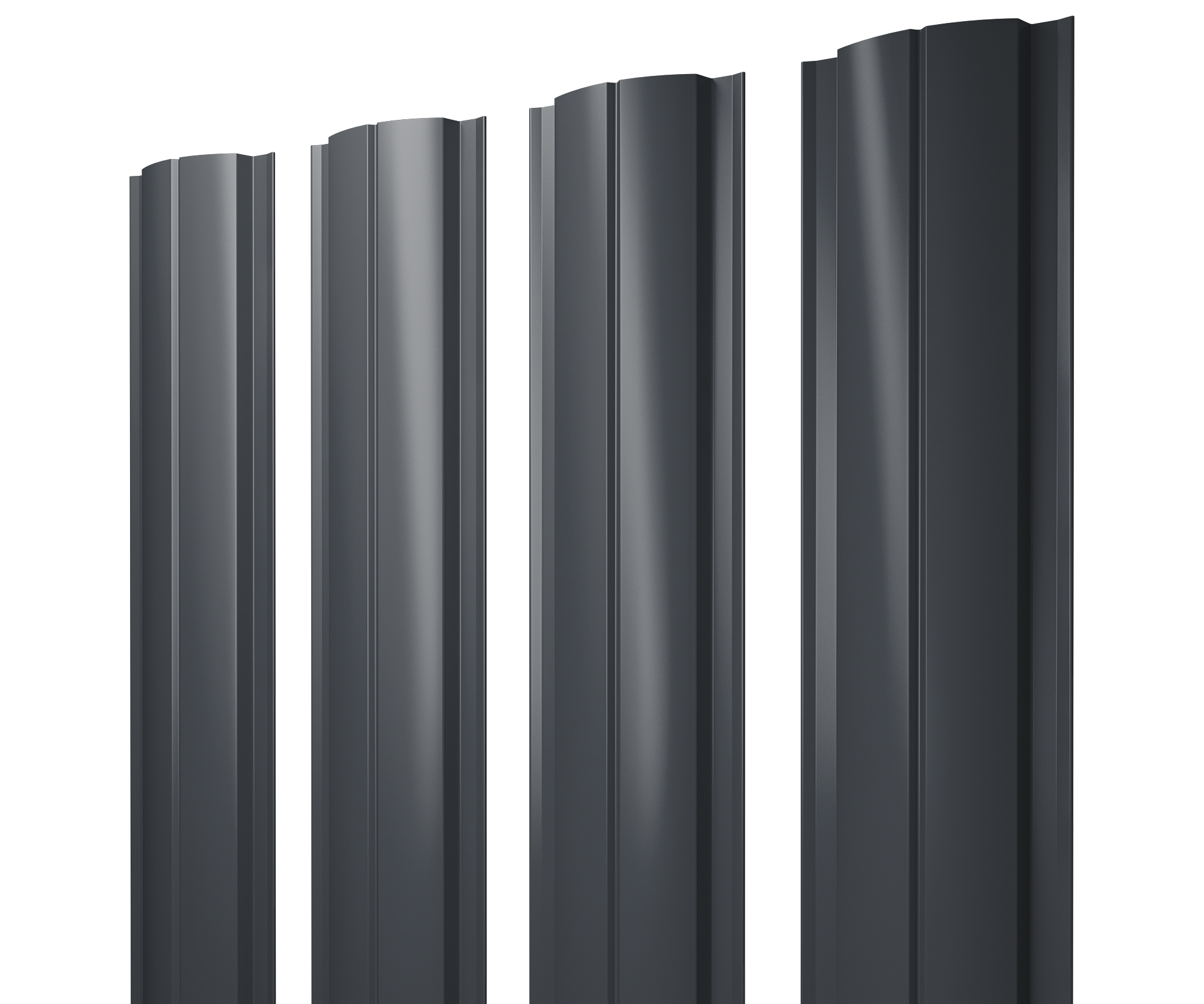 Штакетник Полукруглый Slim с прямым резом 0,5 Rooftop Бархат RAL 7024 мокрый асфальт