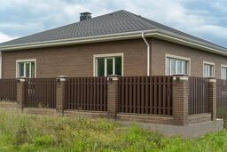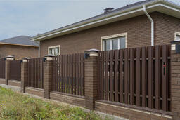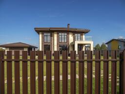 Ограждение такого типа визуально обладает легкостью, оно продуваемо, не обладает парусностью, оставляет участок частично открытым, но при этом максимально защищенным.