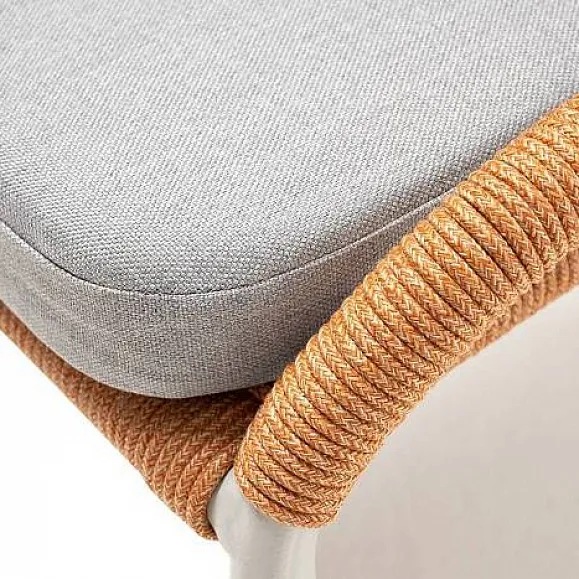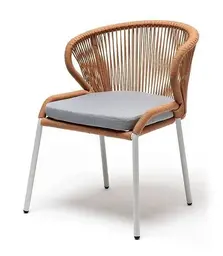 Стул Милан 4SIS плетеный из роупа, каркас алюминий светло-серый (RAL7035) муар, роуп оранжевый меланж круглый, ткань светло-серая