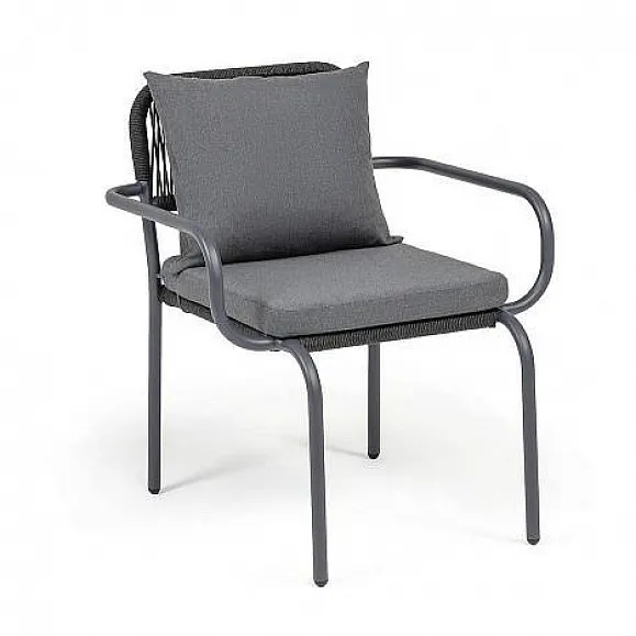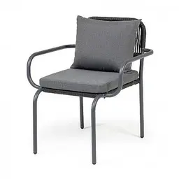 Стул Нуар 4SIS плетеный из роупа, каркас алюминий темно-серый (RAL7024) муар, роуп темно-серый круглый, ткань темно-серая 27