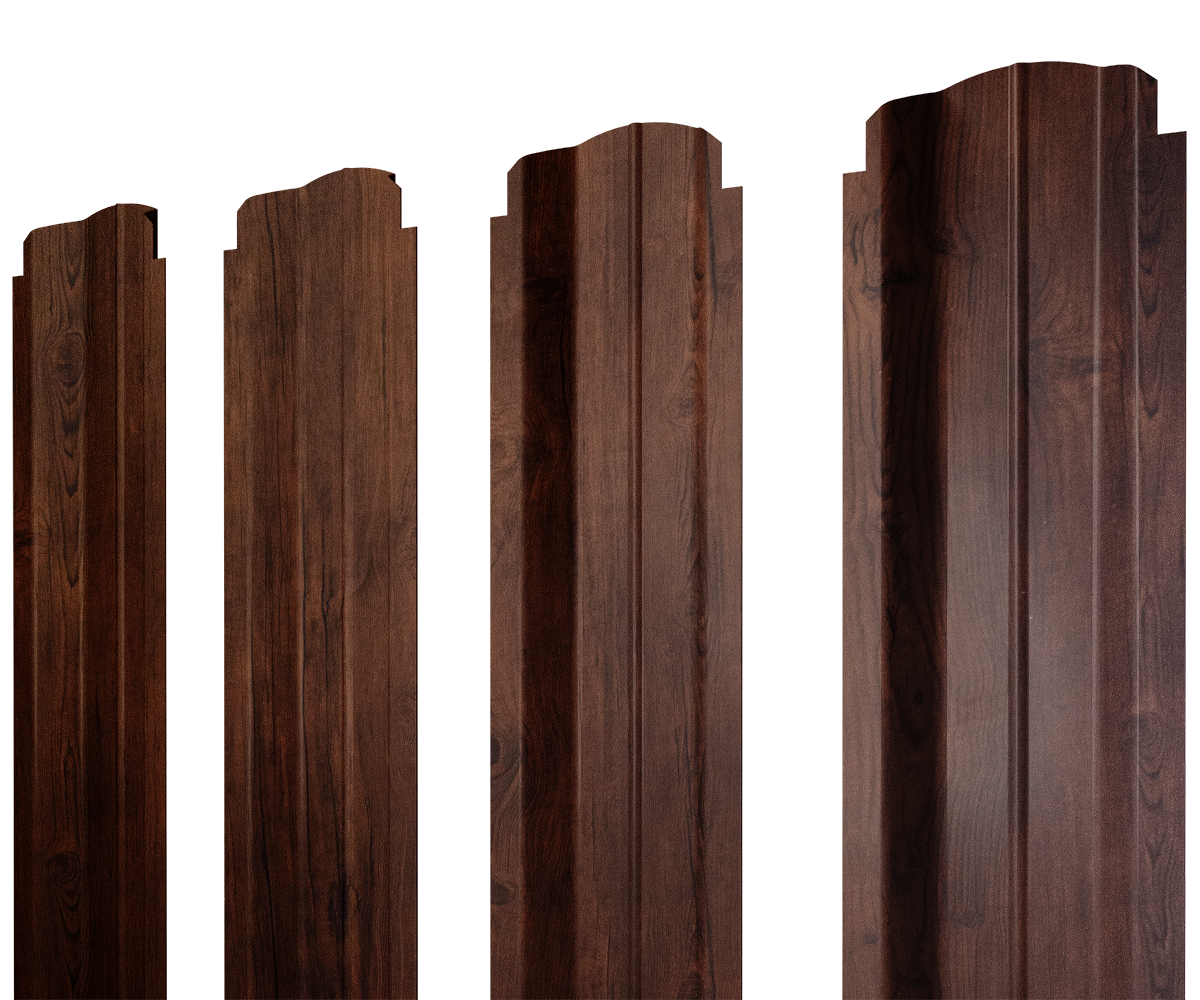 Штакетник П-образный В фигурный — выпуклая во внешнюю сторону форма с канавкой на центральной части. Тем самым у профиля есть ребро жесткости.