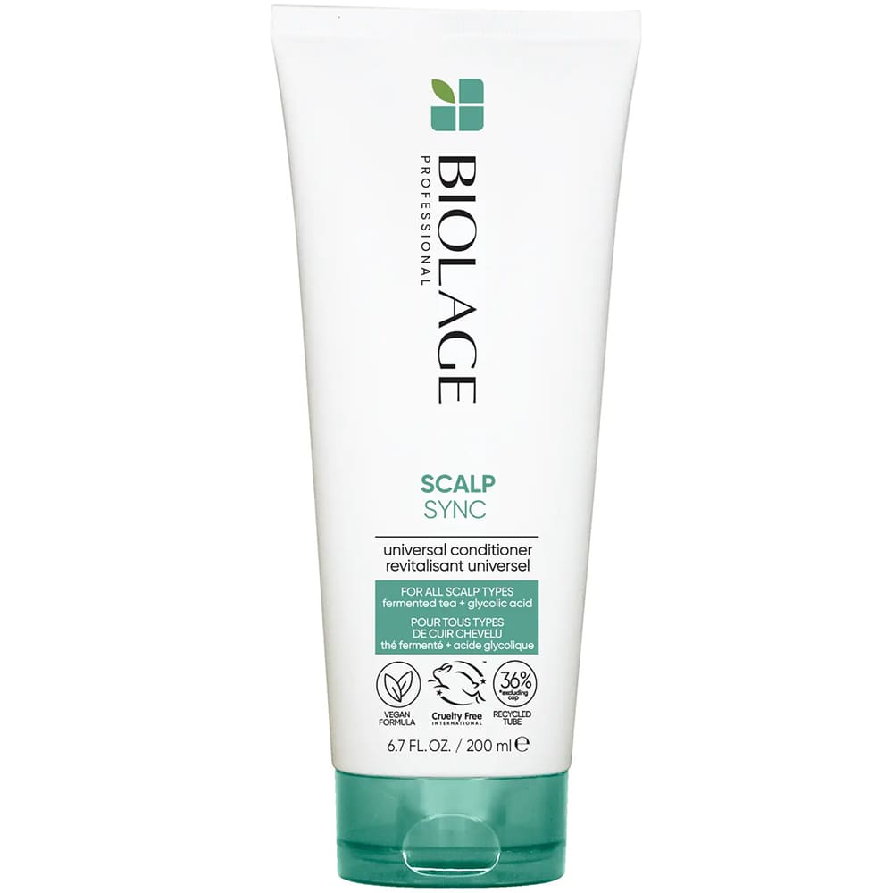 Профессиональный кондиционер для всех типов волос Biolage Scalp Sync (Скальп Синк), 200 мл, – универсальный SPA-уход для всех типов волос увлажняет волосы, придает мягкость, гладкость и блеск. Особая веган-формула кондиционера с ферментированным чаем и гликолевой кислотой глубоко проникает в кутикулу волоса и питает его без утяжеления, делая волосы на 56% более блестящими*. Для сухой кожи головы кондиционер можно наносить непосредственно по проборам на кожу головы и длину волос для увлажнения и более комфортного ощущения. Кондиционер Биолаж облегчает расчесывание и делает волосы более напитанными. Ферментированный чай – это комбинация экстракта зеленого чая и чайного фермента, обладающая противовоспалительными и увлажняющими свойствами, восстанавливает баланс волос и кожи головы. Гликолевая кислота обеспечивает гладкость, мягкость и блеск волосам. Линия подходит для окрашенных волос.