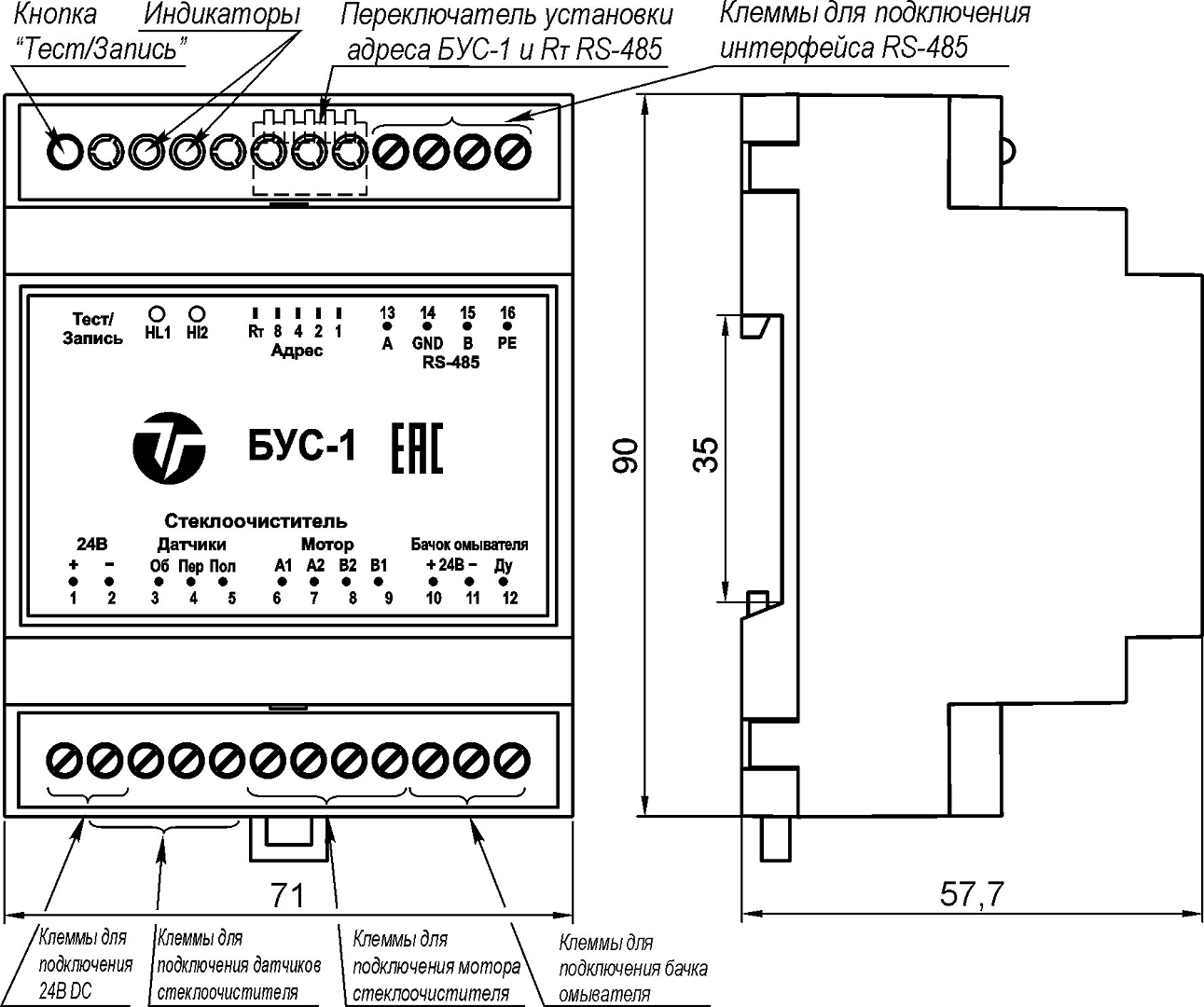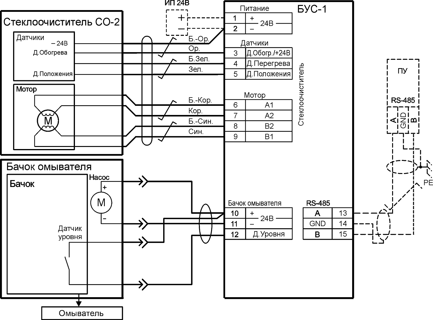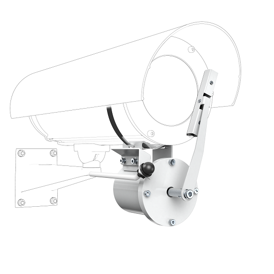 Стеклоочиститель для очистки стекла гермобокса видеокамеры от воды и снега, которые удаляются щеткой с электрическим приводом, а также от загрязнения стекла (при комплектации омывателем и бачком омывателя).