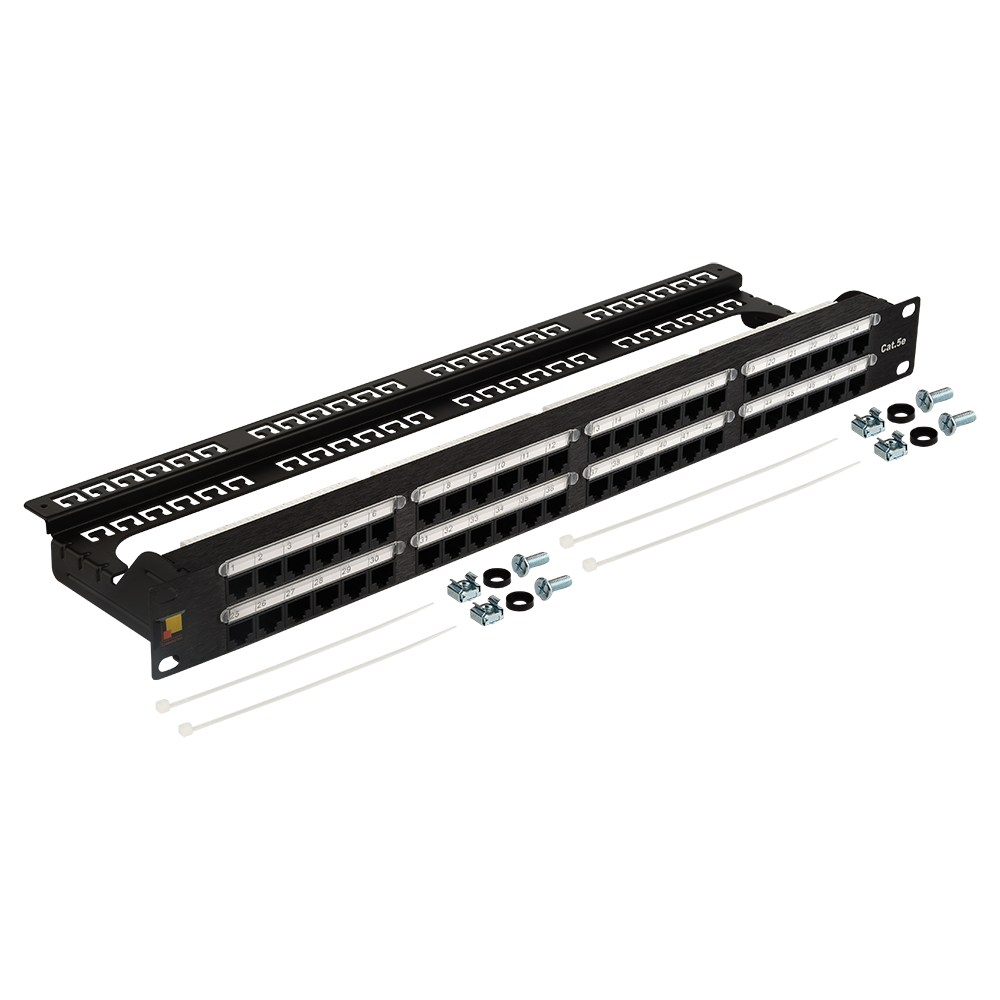 48-и портовая неэкранированная патч-панель предназначена для разделки на ней кабелей различных подсистем СКС и подключения отдельных составляющих сети друг к другу коммутационными шнурами.