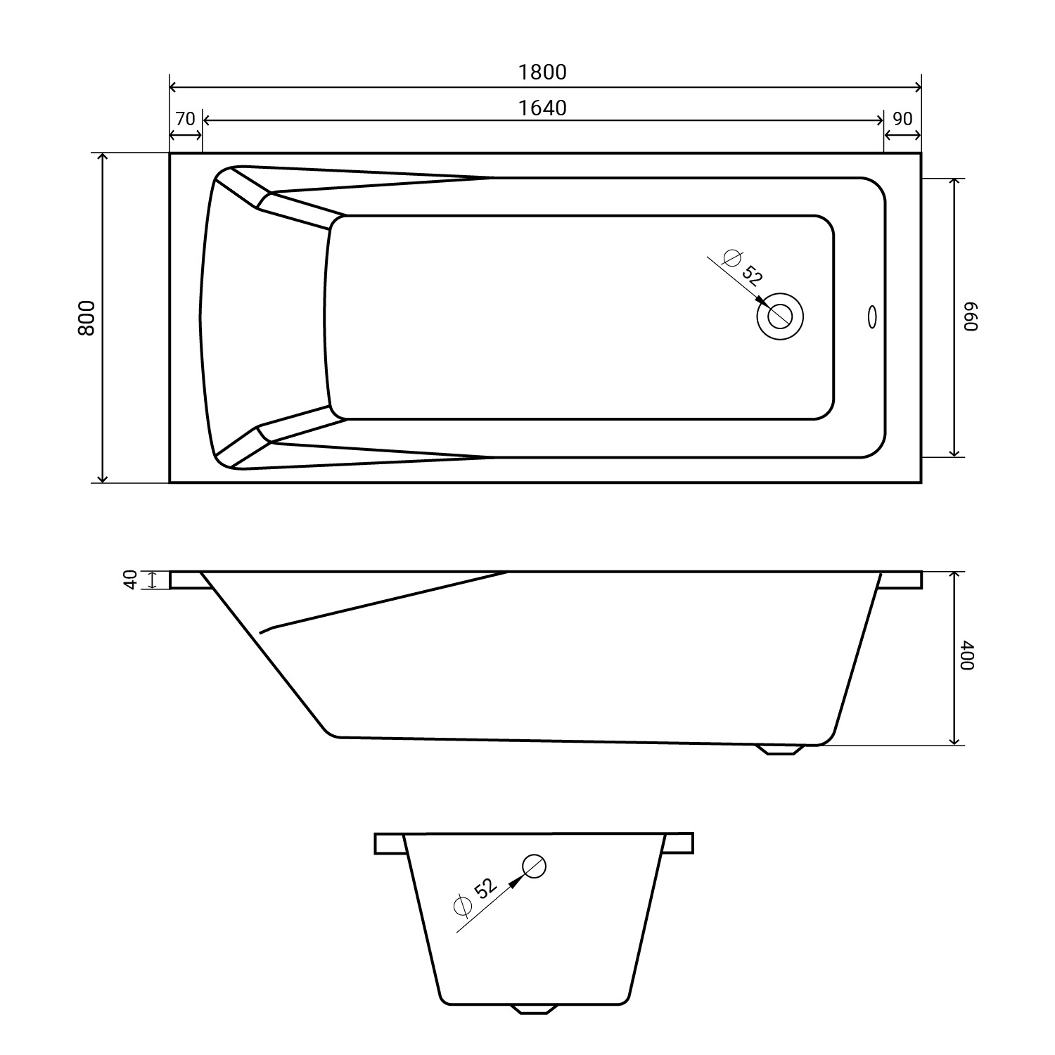 • Диаметр слива 5.2 см