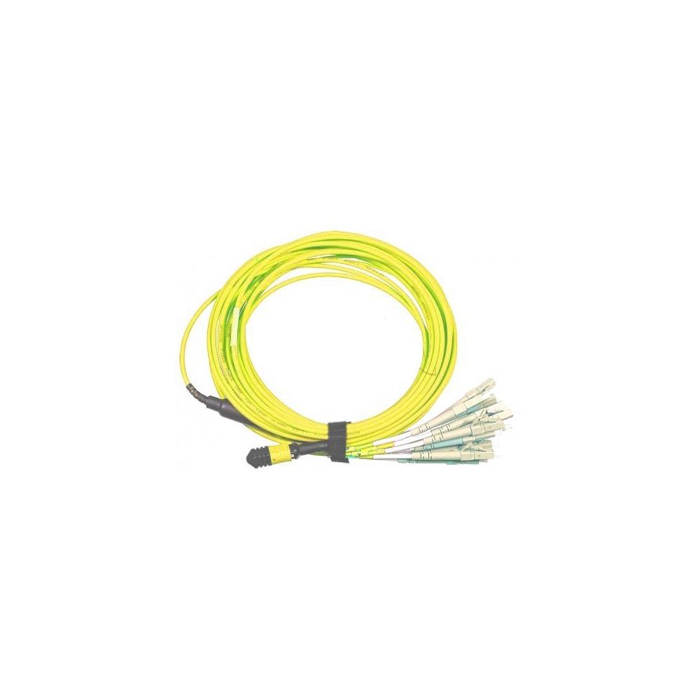 Кабельная сборка состоит из 12-ти оптических волокон в LSZH оболочке, оконцованных с одной стороны 12-волоконным разъемам МРО и 12-ю симплексными разъемами LC с другой.