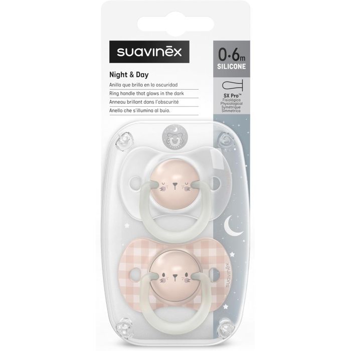 Пустушка Suavinex фізіологочна, 2 шт. 0-6 місяців, нічна/кролик (308214)