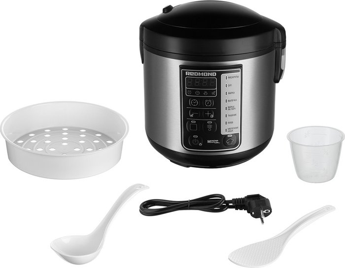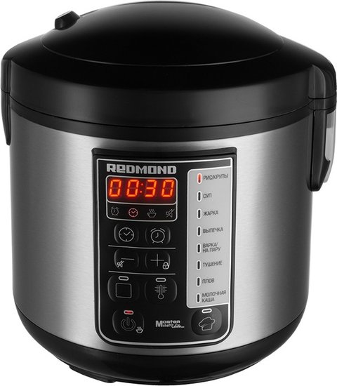 • Перечень режимов работы Жарка, Тушение, Варка/На пару, Молочная каша, Плов, Экспресс, Рис/Крупы, Суп, Выпечка, Мультиповар