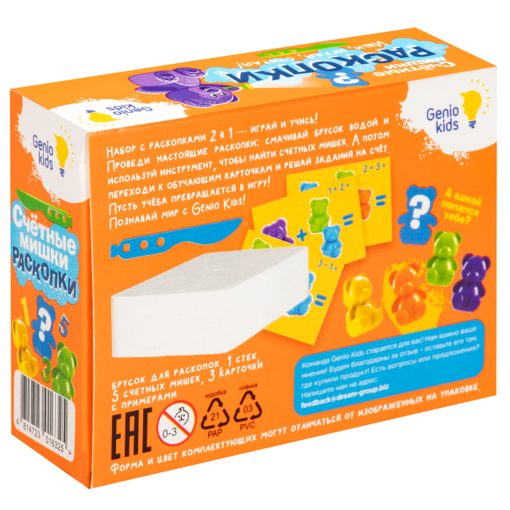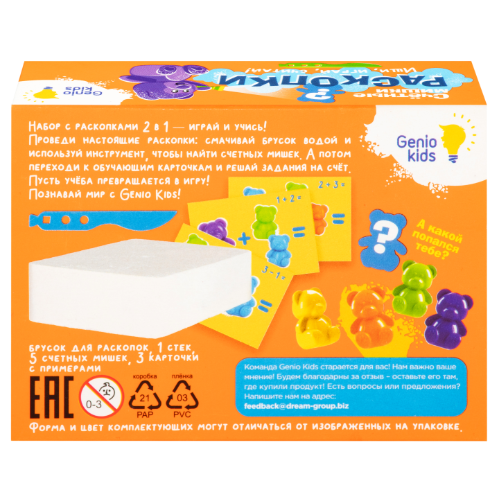 Счётные мишки: 5 шт. (спрятаны в бруске)