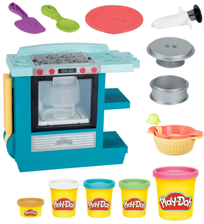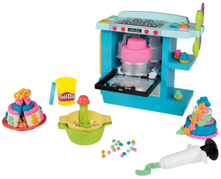 Этот набор превратит детей в настоящих кондитеров! Они смогут "испечь" торт, наблюдая, как он "поднимается" в форме, а затем украсить его с помощью инструментов. Разноцветный пластилин Play-Doh позволяет экспериментировать с дизайном и создавать уникальные десерты.