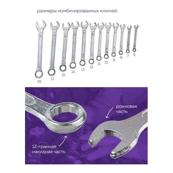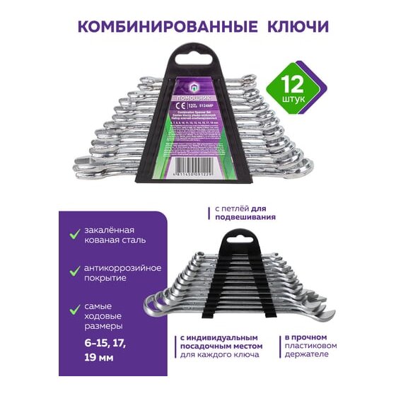 Набор ключей комбинированных Помощник 5124MP(54297) 12 предметов