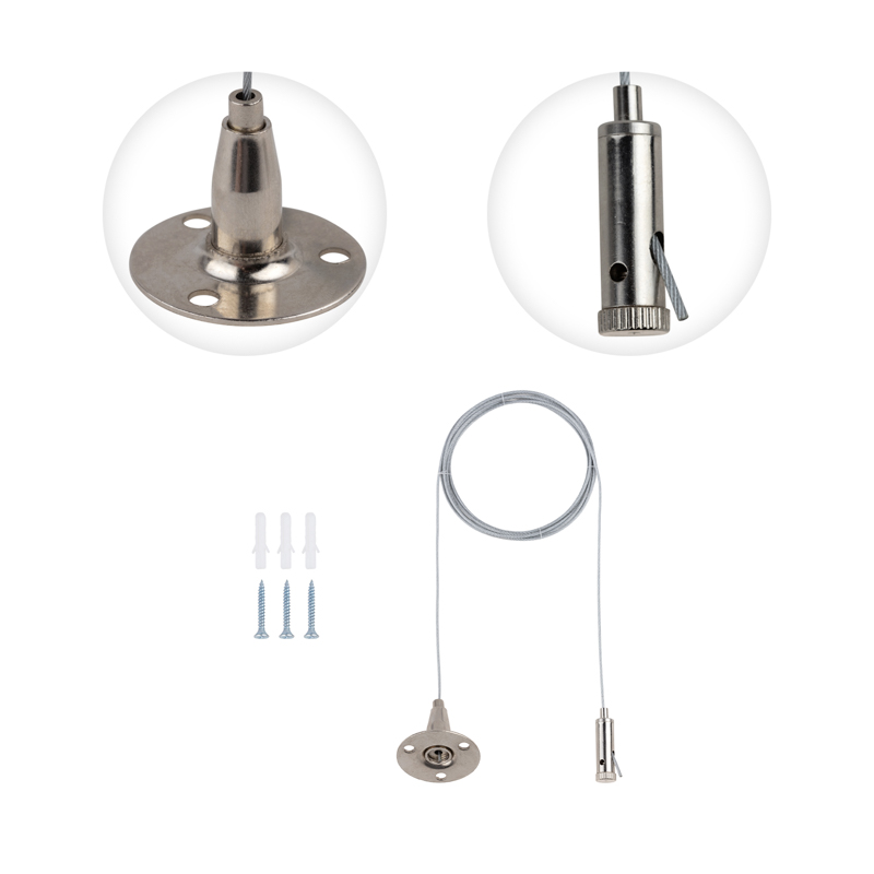 Универсальный комплект тросовых подвесов REXANT с регулировкой высоты произведен специально для светильников или шинопровода REXANT.