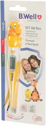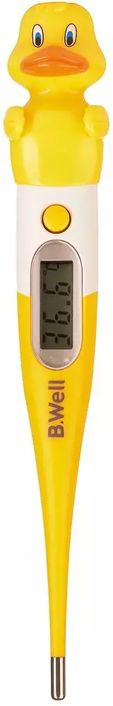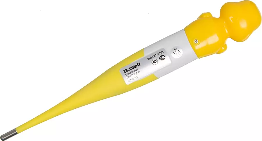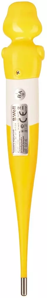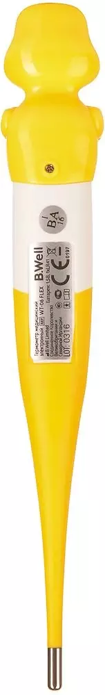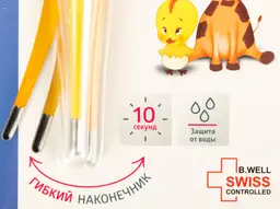 ОсобенностиЯркий детский дизайн. Быстрое измерение от 6-ти секунд. Без ртути и стекла. Гибкий наконечник. Память последнего измерения. Автоматическое отключение. Влагонепроницаемый корпус. Специальный звуковой сигнал при повышенной температуре. Защитный футляр и батарейка в комплекте.