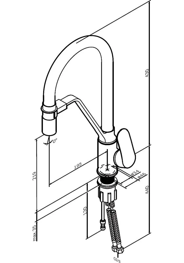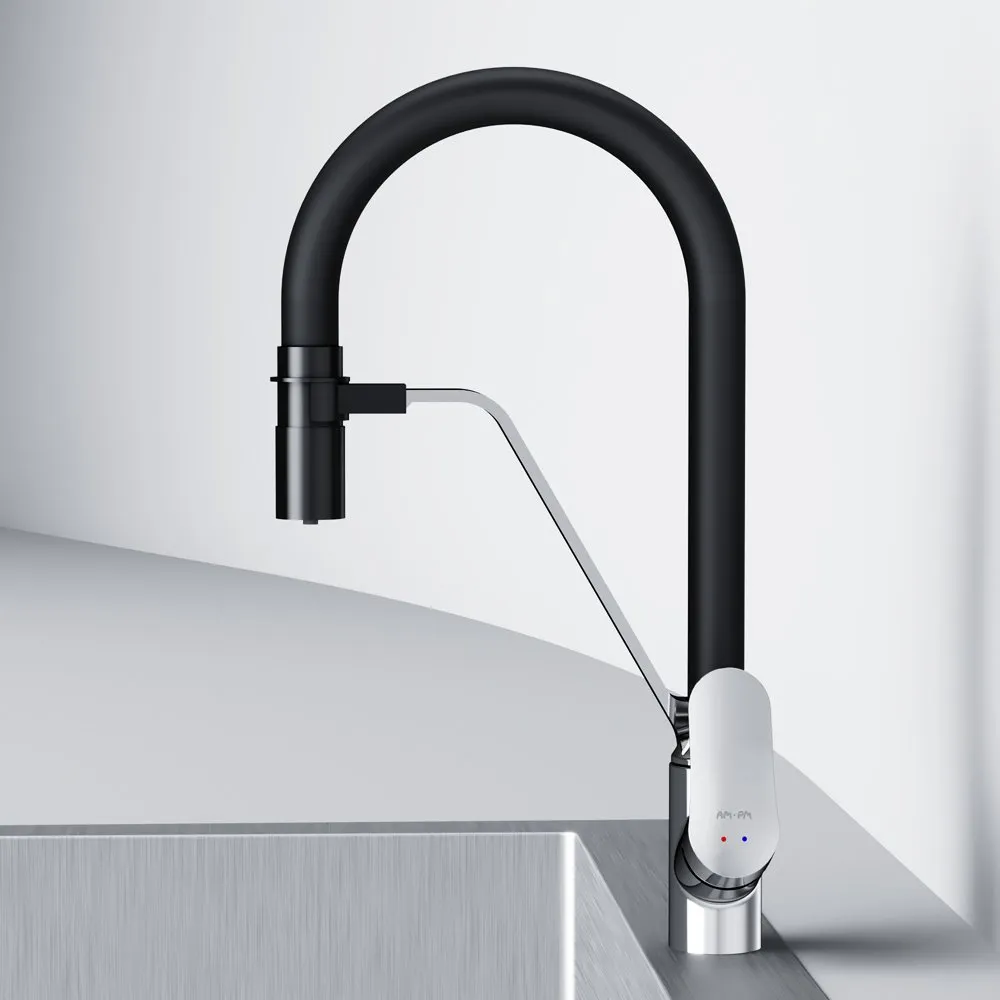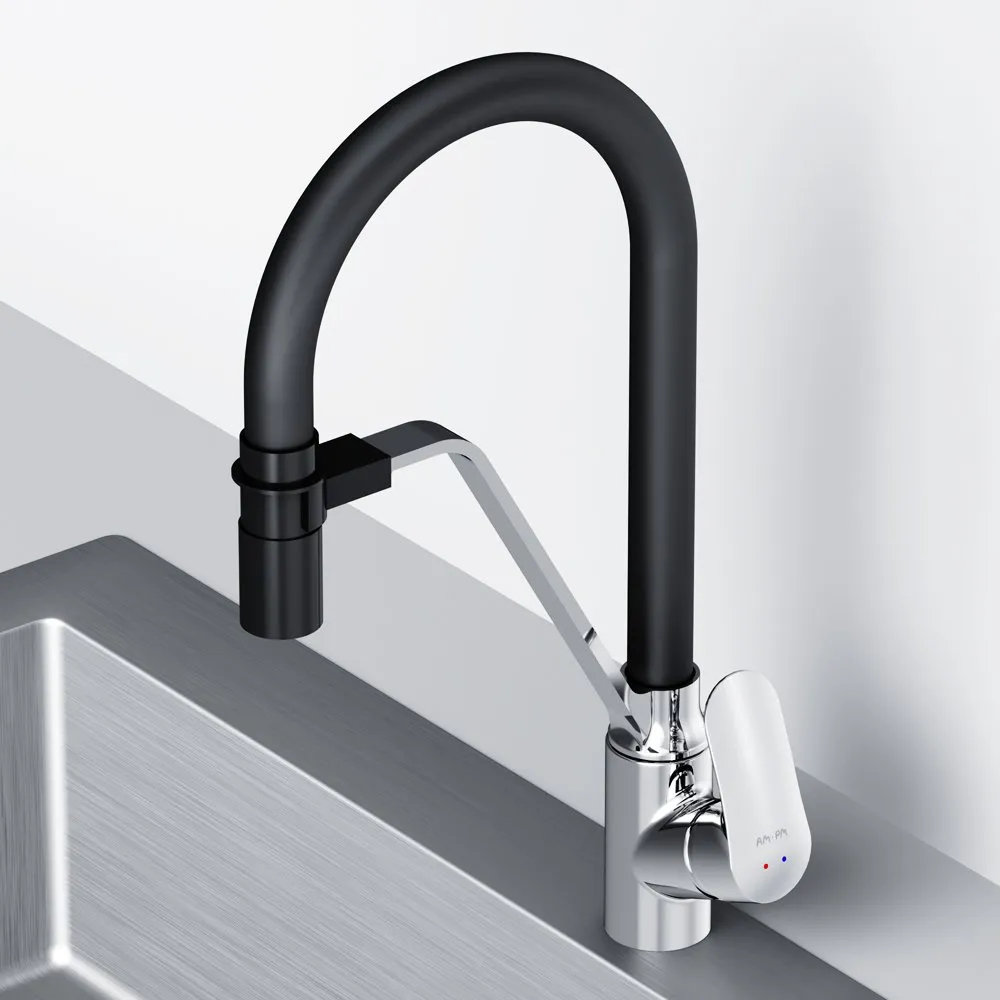 Гибкий излив с магнитным притягивателем для фиксации и встроенным каналом для питьевой воды. Материал изготовления корпуса . Способ монтажа настольный,