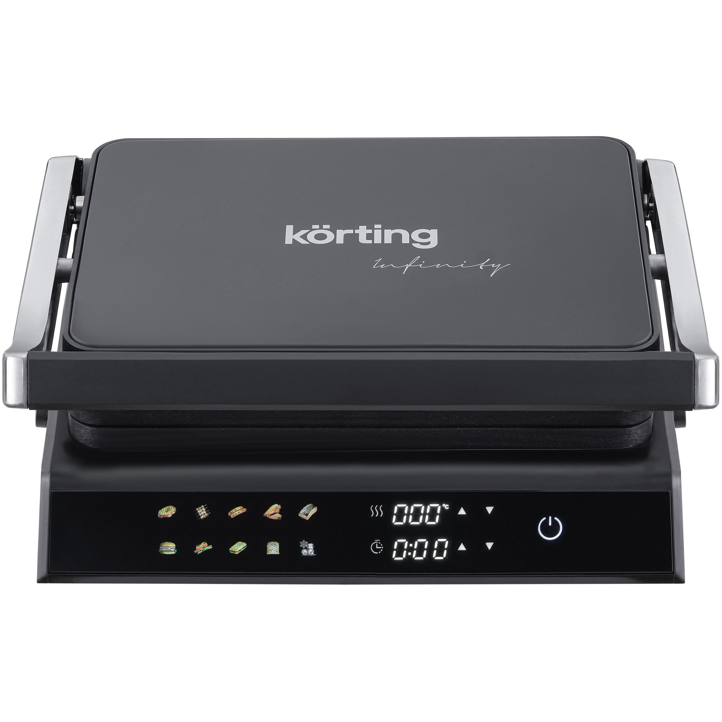 Гриль KORTING/ Гриль KORTING, мощность 2000 Вт, сенсорное управление, цветной дисплей, 10 автоматических программ, раздельная регулировка температуры верхней и нижней панелей, температура от 90 до 230 градусов, таймер, цвет черный
