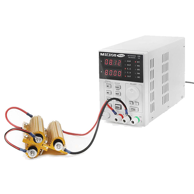 В режиме стабилизации блок питания МЕГЕОН 36303 выдает установленный в настройках уровень напряжения на выходе и при повышении энергопотребления автоматически поддерживает номинал выдаваемого тока на заданном уровне. При активации функций DCP и/или DVP производится автоматическое отключение выходного контура в случае превышения выбранных пороговых показателей силы тока либо напряжения соответственно. Предусмотрена возможность предварительного выполнения необходимых настроек с подсоединенной нагрузкой без подачи напряжения на нее, с последующим электрическим подключением путем нажатия кнопки OFF/ON.