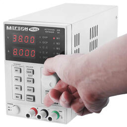 Показатели силы тока и напряжения на выходе МЕГЕОН 36303 могут задаваться с разрешением 0,001 А и 0,01 В соответственно путем прямого регулирования или вызова из памяти предварительно настроенных значений. Ввод цифровых показателей выполняется верньером ADJUST с переключением между разрядами с помощью соответствующих клавиш, что ускоряет программирование. Вызов настроек из памяти для четырех ячеек производится прямым нажатием кнопок, а режим M5 активируется поворотом энкодера после включения клавиши M4.