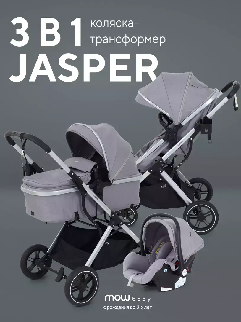 Детская универсальная коляска MOWbaby Jasper 3 в 1 / MB022 (Silver Grey)