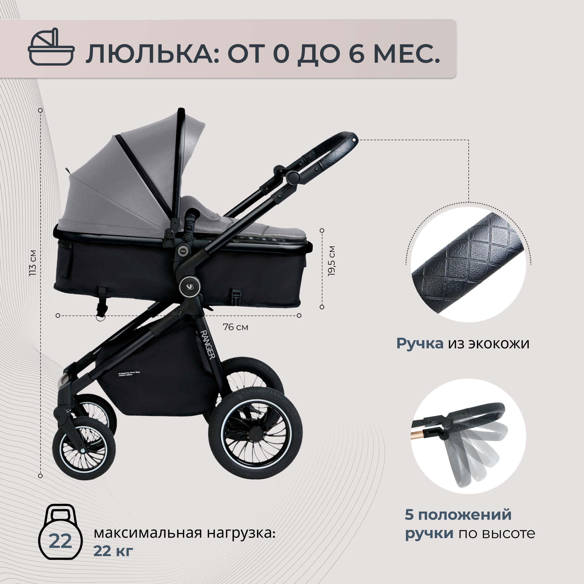 Общая высота коляски113 см (с люлькой), 110 см (с прогулочным блоком)