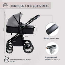 Возможности регулировкисмена положения модуля, регулировка по высоте ручки (6 положений), регулировка капюшона (8 положений), регулировка наклона спинки (3 положения)