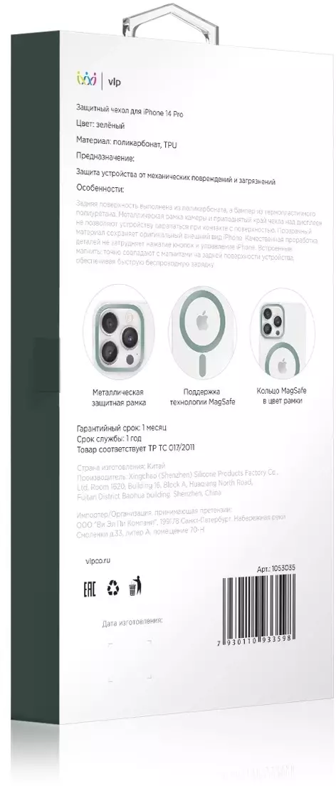 Чехол VLP Line Case, для Apple iPhone 14 Pro, зеленый/прозрачный (1053035)