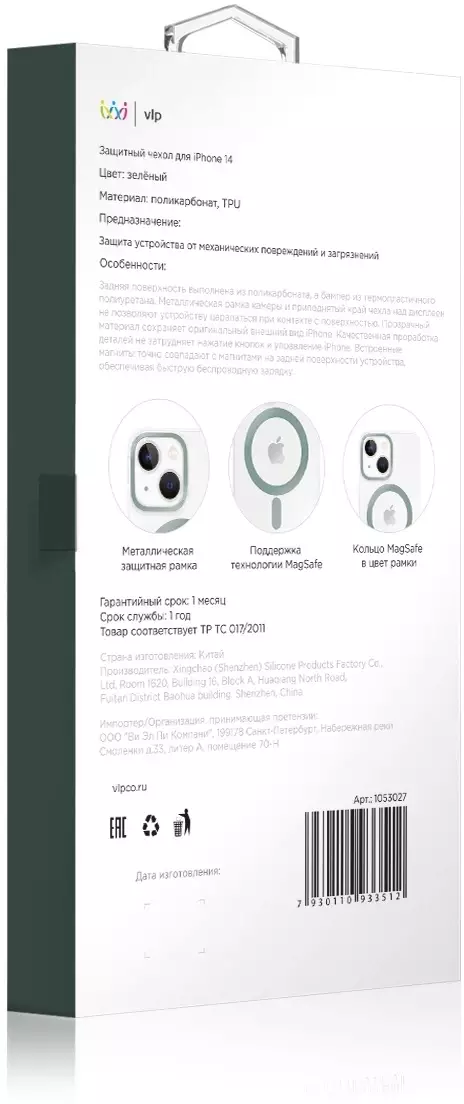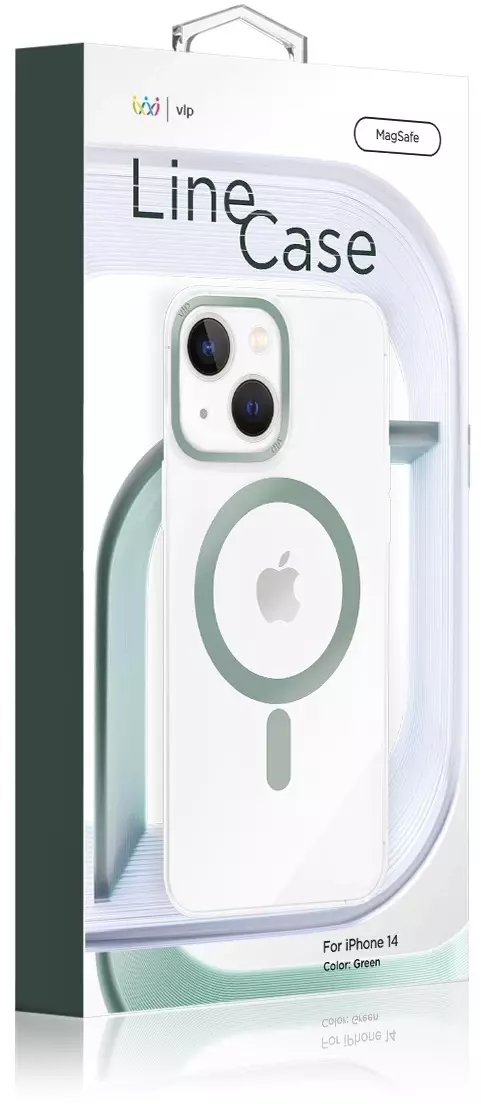 Чехол VLP Line Case, для Apple iPhone 14, зеленый/прозрачный (1053027)